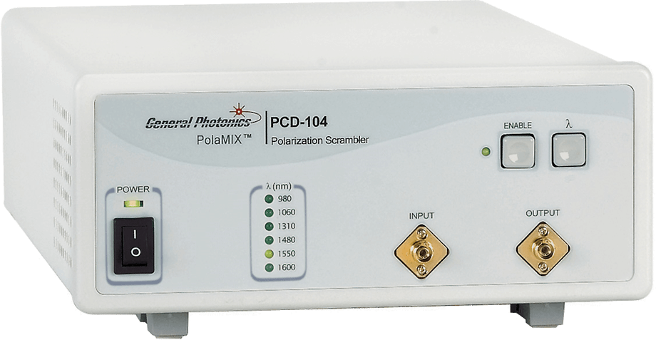 The PCD-104 Scrambler uses all-fiber technology to effectively disrupt the polarization state. the PCD-104 Scrambler achieves depolarization for a variety of important applications. Scrambling the input light eliminates measurement inaccuracies due to the polarization sensitivity of the instrument and system performance degradation due to PDG during testing. The PCD-104 offers superior performance with *low insertion loss, return inversion, and residual phase and amplitude modulation.