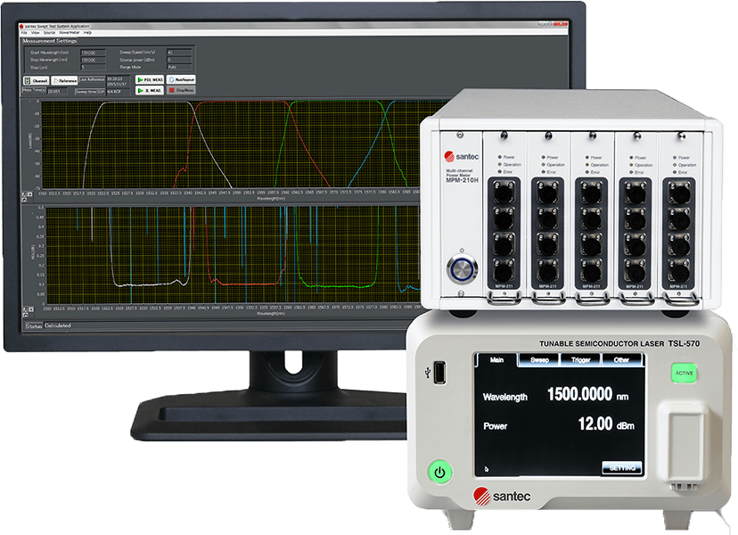The TSL-570 works seamlessly with Santec's optical power meters, optical switches, and polarization controllers to provide a complete solution for WDL and PDL testing.