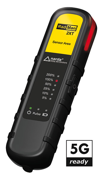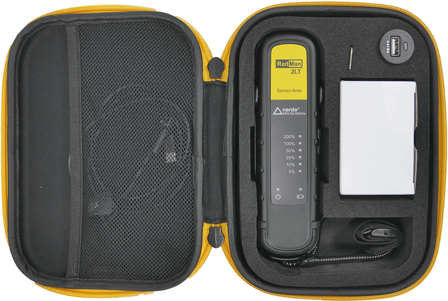 RadMan个人防护仪是一款携带式测试及报警设备,主要是用于电磁辐射的及时安全报警防护,适用于随身携带,只要超过50%的最大暴露限值,仪表就会蜂鸣警报。另外配有耳机,方便用户在嘈杂的环境下使用。五个级别的指示灯提供超过辐射功率密度 5 %,10 %,25%,50 %,100%以及 200 %的分别告警显示。