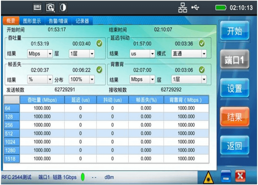 支持RFC 2544标准的吞吐量、时延、包抖动、帧丢失和背靠背测试
