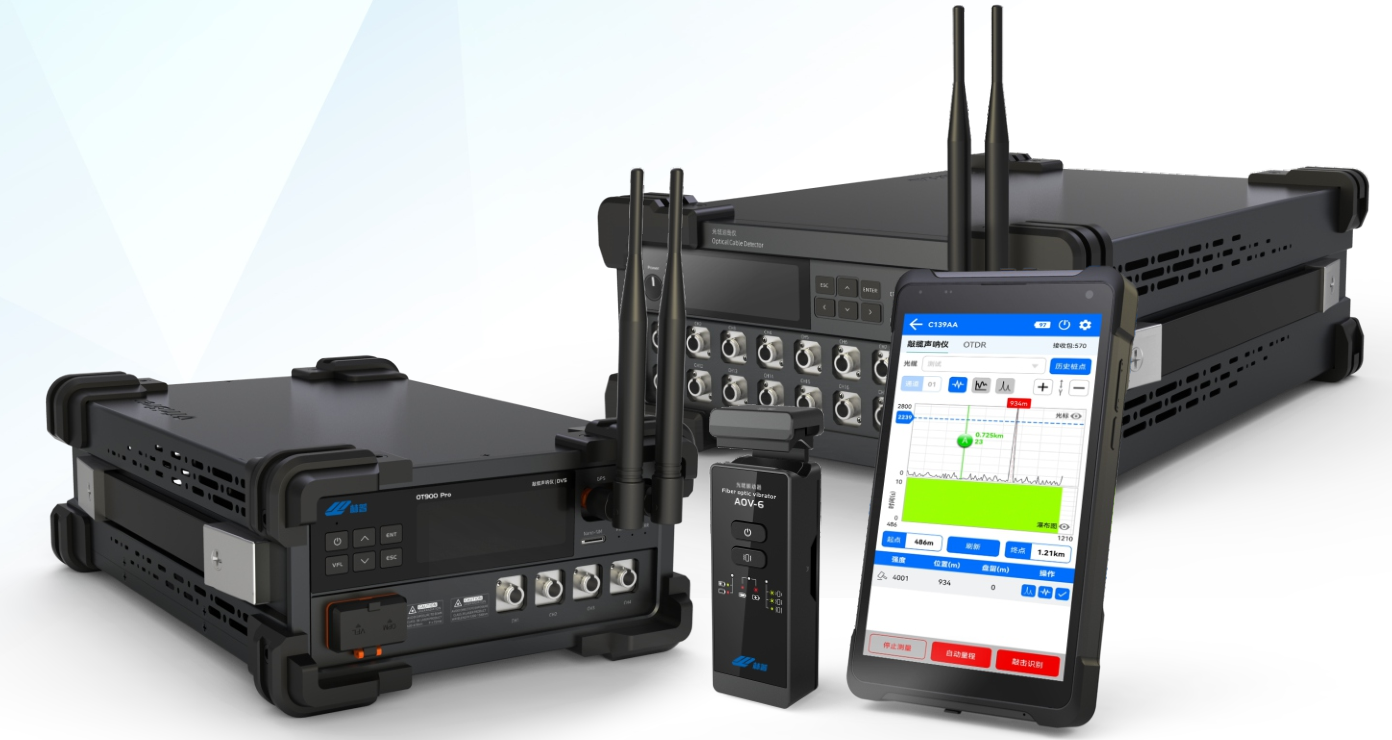 OT900 Pro敲缆声呐仪是一种利用光纤作为传感介质,实现对长距离光缆周边范围内的振动信号进行连续、实时采集的技术。通过人为制造振动,能够精确获取目标光缆点位,化繁琐为极简,只需一人、一锤、一手机,即可完成光缆资源的故障定位、光缆查找、普查等工作。提供多通道测试,可满足4或20组不同人员同时工作。