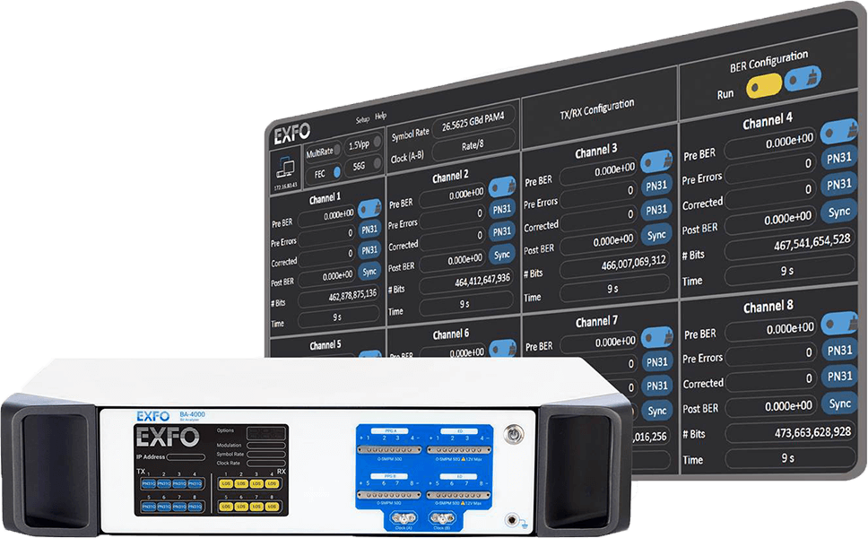 BA-4000-8-56-PAM:400G/800G误码率分析仪,适用于8通道NRZ 56 Gbit/s或8通道PAM4 56 GBd测试。