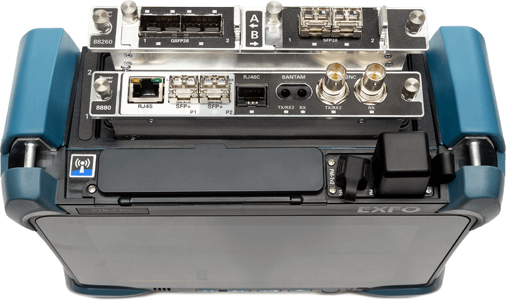 兼容紧凑的FTB-2 Pro平台,集成多个光测试工具,支持电池供电,可同时运行2个模块,最多4个10 GigE端口